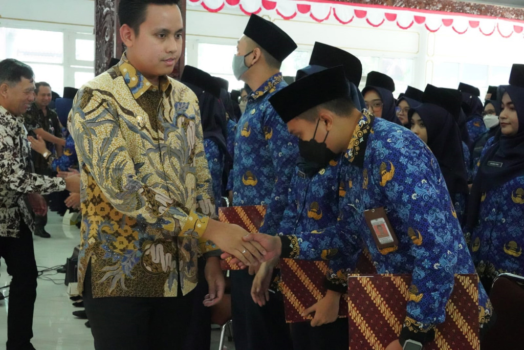 Bupati Dico mengucapan selamat kepada para CPNS yang baru saja diambil sumpahnya dan diangkat menjadi PNS di lingkungan Pemerintah Kabupaten Kendal.
