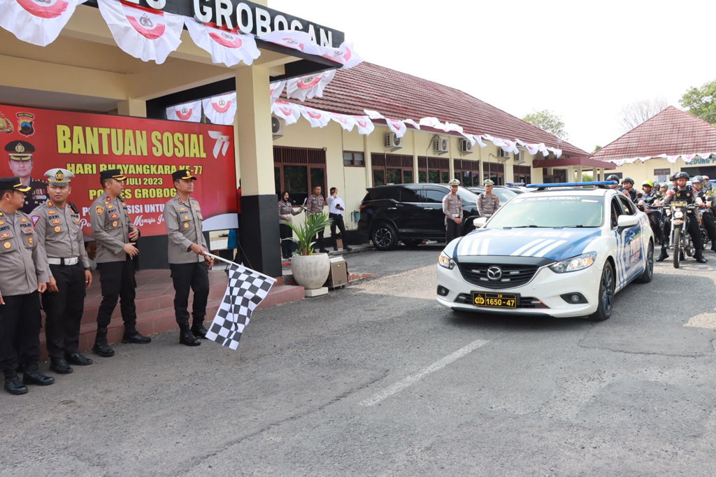 Grobogan-Inspirasiline.com. Dalam rangka menyambut Hari Bhayangkara ke 77, Polres Grobogan kembali memberikan bantuan sosial (bansos) pada warga yang membutuhkan, Senin (19/6/2023).
