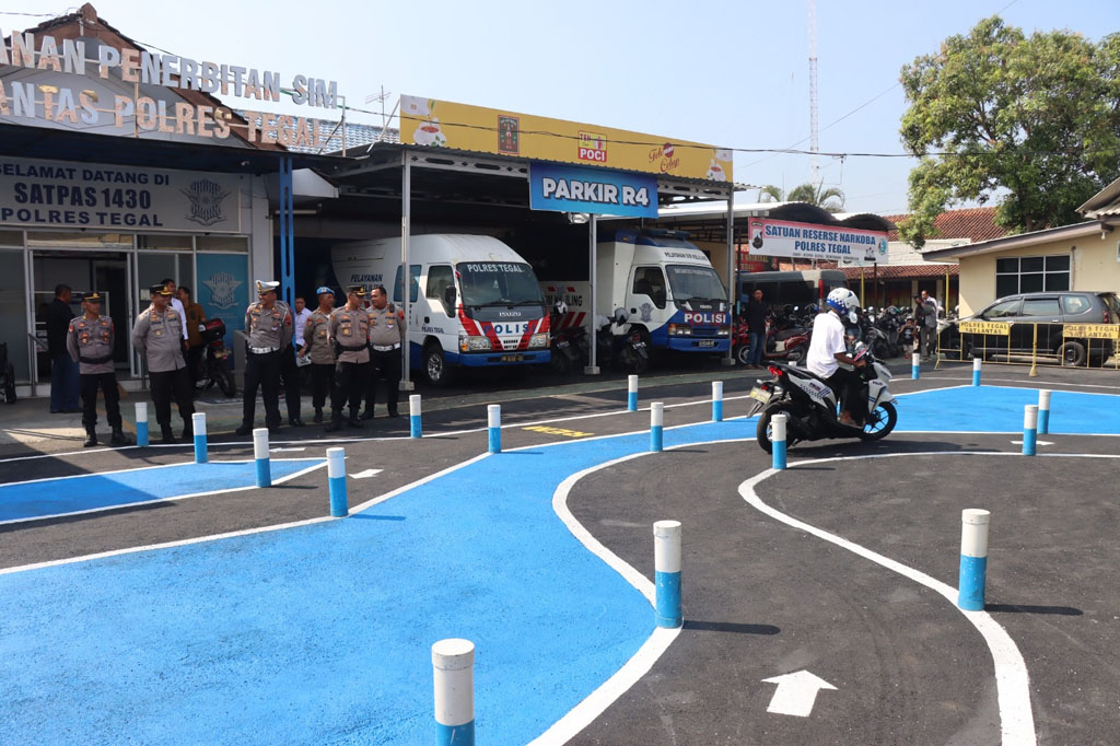 Tegal-Inspirasiline.com. Polres Tegal mulai Senin (7/8) 2023 mulai melakukan perubahan dalam pelaksanaan ujian pembuatan Surat Ijin Mengemudi (SIM) perubahan uji praktek roda dua yang sebelumnya dikenal materi praktek angka 8 yang dinilai agak menyulitkan sekarang beberapa item dihilangkan seperti uji pengereman, uji u-turn/ berbalik arah dan zig zag, sekarang diganti leter S.