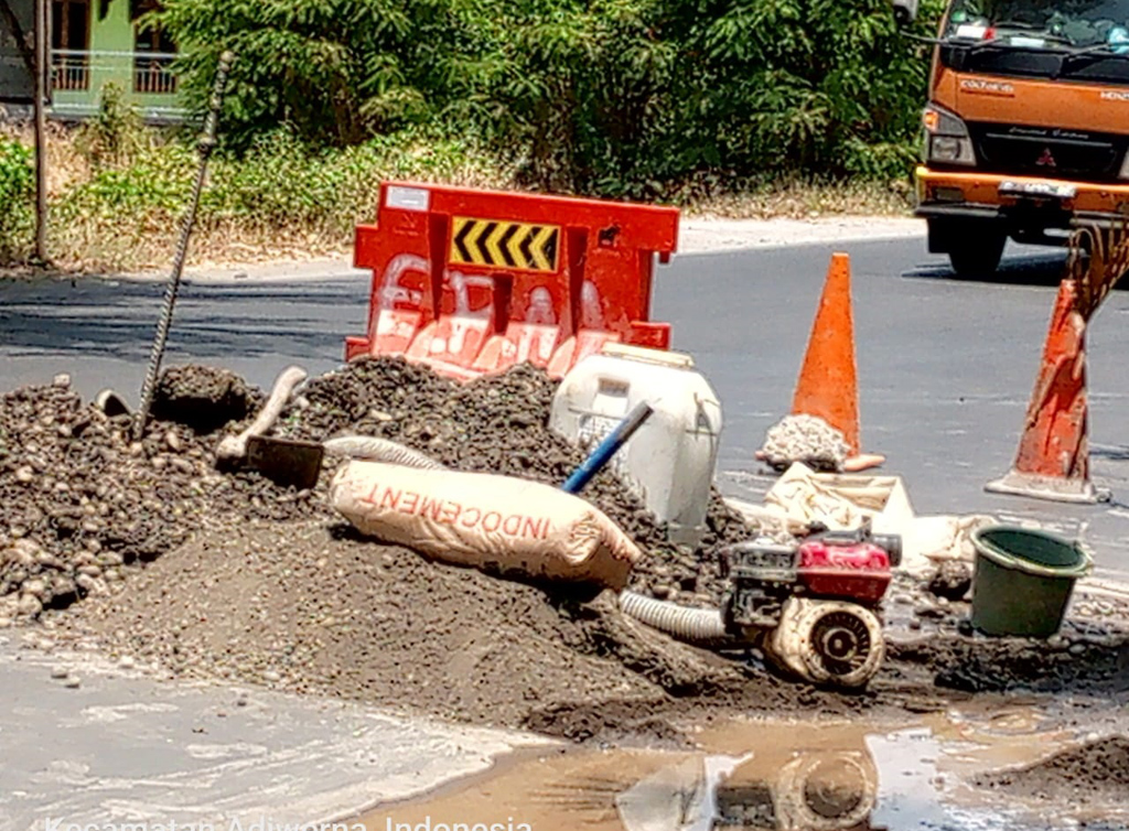 Meski sudah dilakukan perbaikan oleh tim tehnis PDAM, namun dari pemantauan, tetap saja bekas galian pipa tersebut masih njeglong dan bahkan amblas sehingga mengurangi kenyamanan pengguna jalan. (Biet)
