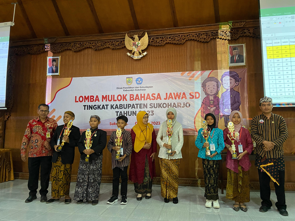 Cabang pidato Bahasa Jawa kelompok (Pa) juara I. Daniel Okta Rosi SDN Pojok 2 Tawangsari, II. Daffa Nashrulah SDN Cangkol 3 Mojolaban, III.Raihan Ahmad Fadli SDN Gayam 1 Sukoharjo. Kelompok (Pi) juara I. Ahya Jihan Naiah SDN Mulur 3 Bendosari, II. Arahiyah Najlaa SDU Daar Dzikir Bulu, III. Senandung Kumala Zema SDN Nuter 3. (Prie)