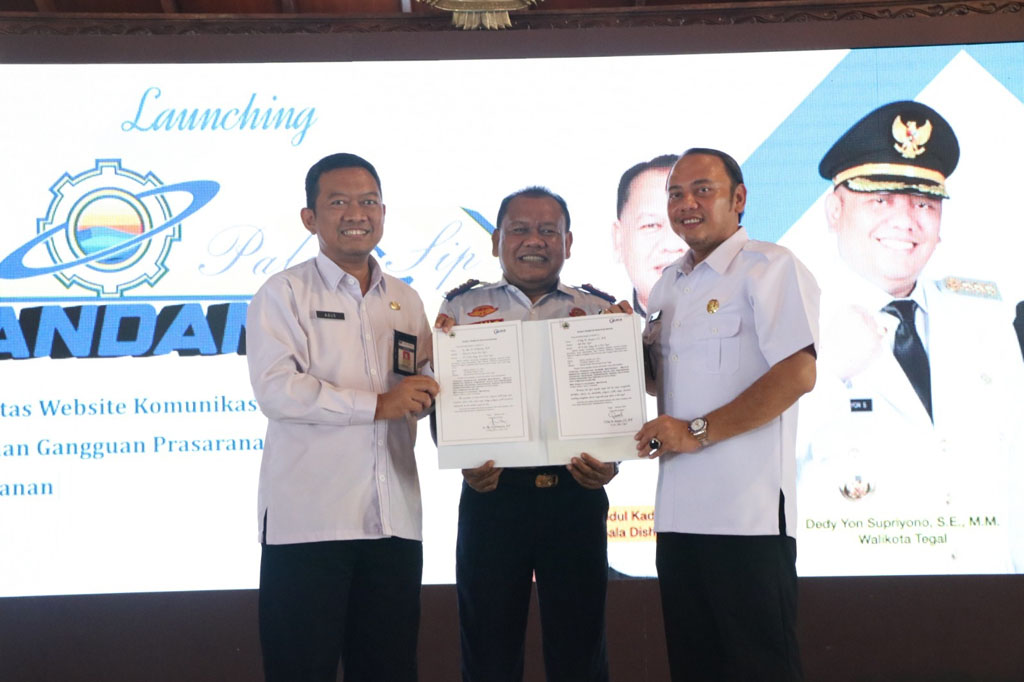 Tegal-Inspirasiline.com. Wali Kota Tegal, H. Dedy Yon Supriyono meresmikan Sistem Sinegritas Website Komunikasi Aduan dan Penanganan Gangguan Prasarana Perhubungan dengan Pelayanan Daring Responsif dan Terpadu (Giat Komandan Paling Sip) di Pendopo Ki Gede Sebayu, Kota Tegal, Rabu (18/19/2023) pagi.