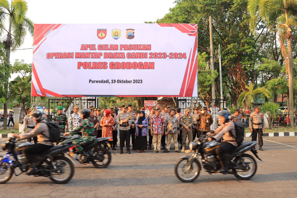 Kegiatan show of force atau unjuk kekuatan tersebut, dilaksanakan usai pelaksanaan apel gelar pasukan Operasi Mantap Brata Candi 2023 yang digelar di halaman Setda Grobogan, Kamis (19/10/2023).