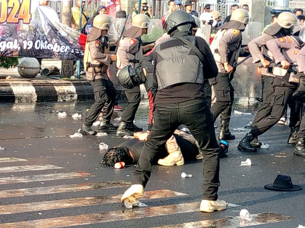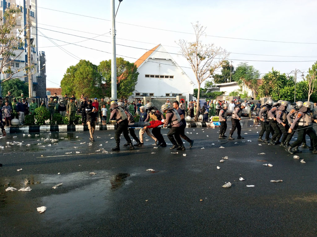 Ketika di beri peringatan dengan semprotan wster Canon, masa malah tambah brutal dan menyerang secara fisik kepada petugas.