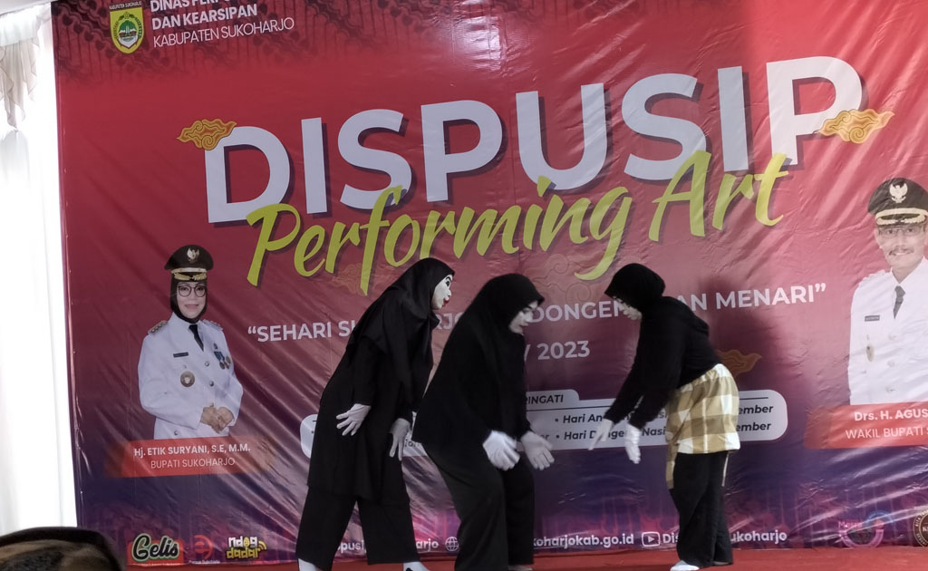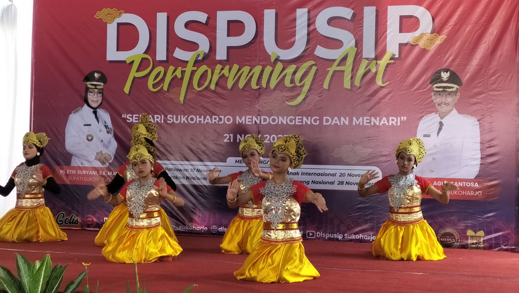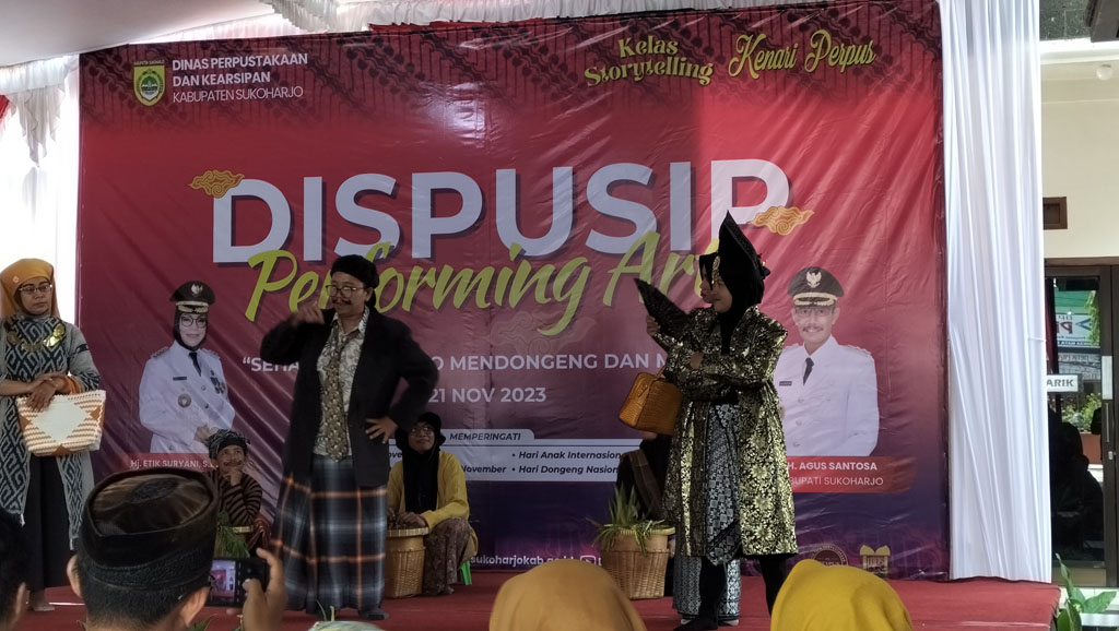 Ka.Dispusip Proboningsih Dwi Danarti disela-sela kegiatan kepada wartawan mengatakan bahwa Dispusip Perfoming Art ini adalah sehari Sukoharjo mendongeng dan menari dalam rangka memperingati Hari Pahlawan 10 November, Hari Gerakan Nasional Membaca 12 November, Hari Anak Internasional 20 November, dan Hari Dongeng Nasional 28 November.