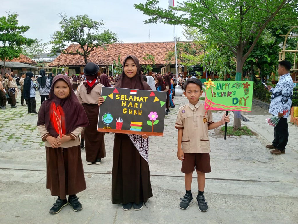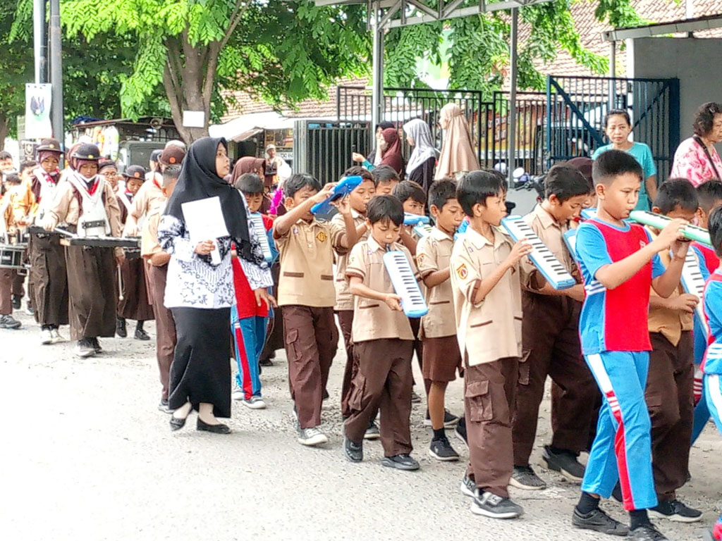 Diawali dengan pasukan pembawa banner dan sejumlah tulisan tentang kecintaan terhadap guru, disusul pasukan. Unit drum band dan semua murid dari kelas 1 sampai kelas 6 dan setiap regu didampingi oleh guru.