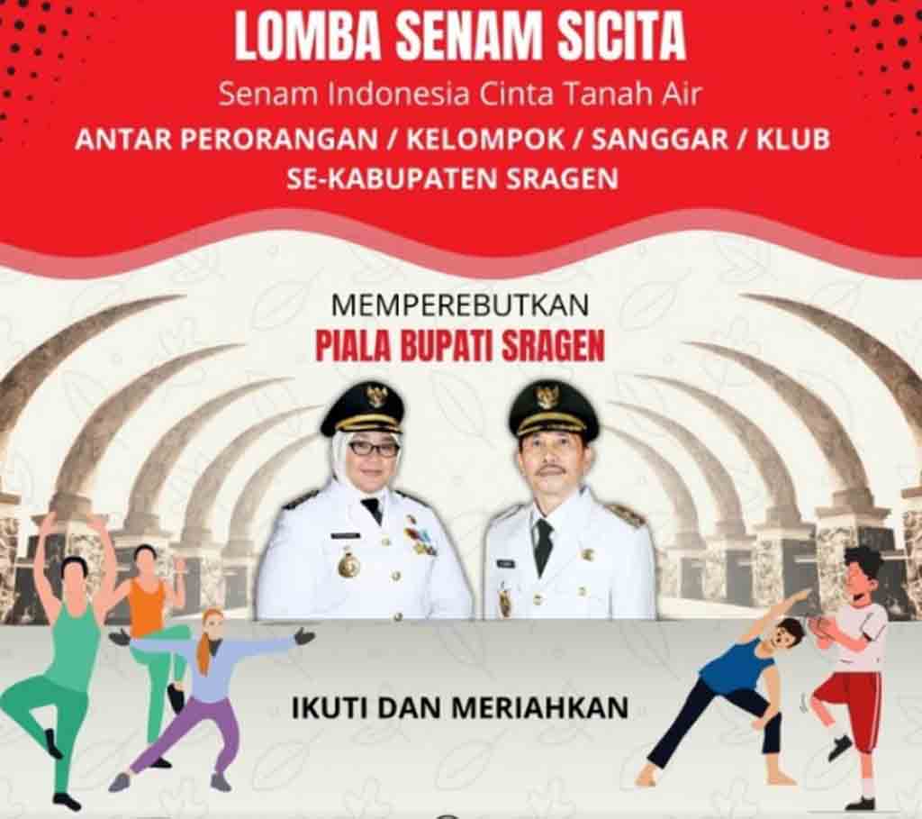 Sragen-Inspirasiline.com. Dinas Pemuda dan Olahraga Kabupaten Sragen Serta Komite Olahraga Rekreasi Masyarakat Indonesia (Kormi) Kabupaten Sragen Menyelenggarakan Lomba Senam Indonesia Cinta Tanah Air (SICITA) Dalam Rangka Hari Ibu Ke-95 Tahun 2023.