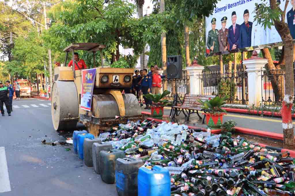 ‘’Menjelang Nataru ini, jajaran Polres Grobogan Polda Jateng menggelar Kegiatan Rutin Yang Ditingkatkan (KRYD) dengan sasaran penjual miras illegal. Hasilnya, ribuan botol miras berbagai jenis disita petugas dari beberapa warung dan tempat hiburan untuk dilakukan pemusnahan,’’ kata Kapolres Grobogan Polda Jateng.
