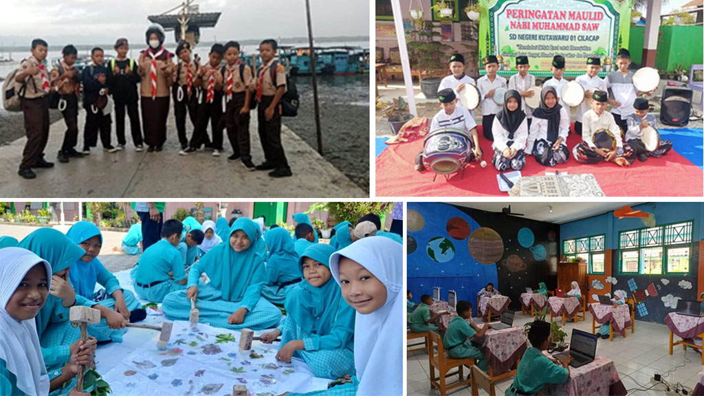 Cilacap-Inspirasiline.com. SD Negeri Kutawaru Cilacap merupakan sekolah yang lokasinya berada di sebrang lautan. Kepala Sekolah SDN Kutawaru Cilacap Widyanti, SPd., MPd mengemukakan sekolahnya memiliki 260 siswa yang diampu oleh 14 Guru dan Tenaga Kependidikan. Menurutnya ada tiga jenis ekstrakurikuler yang diberikan kepada anak didiknya yakni pramuka, volly dan rebana. Karena sekolah berada di sebrang pulau, dia dan sebagian guru harus nyebrang laut untuk mengajar. Demikian pula ketika ada kegiatan di kota, siswa dan guru mesti harus naik perahu motor.