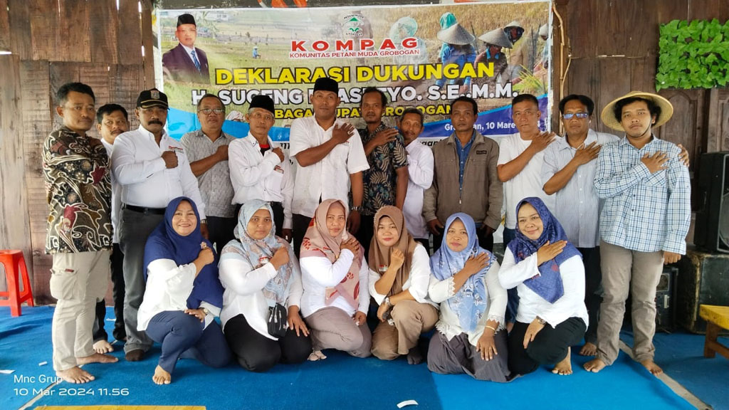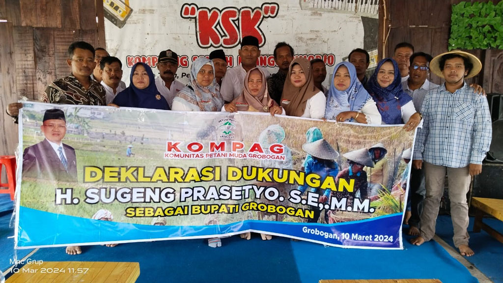 Salah satunya dari kalangan komunitas petani muda Grobogan ( KOMPAG) yang mendeklarasikan dukungan tersebut, berlangsung di rumah makan KSK Krangganharjo, Toroh Grobogan pada Minggu (10/3/24).