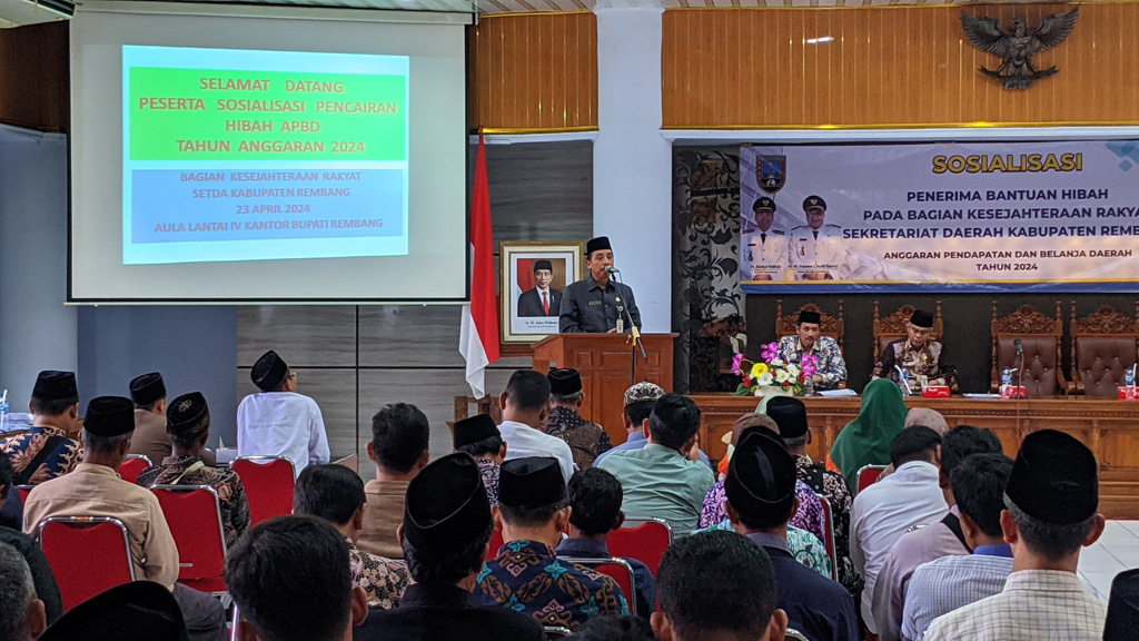 Hal itu disampaikan Bupati Rembang Abdul Hafidz saat sosialisasi penerimaan dana hibah APBD 2024 di lantai 4 gedung Setda Rembang, Selasa (23/4). Sedikitnya ada 199 penerima bantuan hibah yang hadir dalam sosialisasi tersebut.