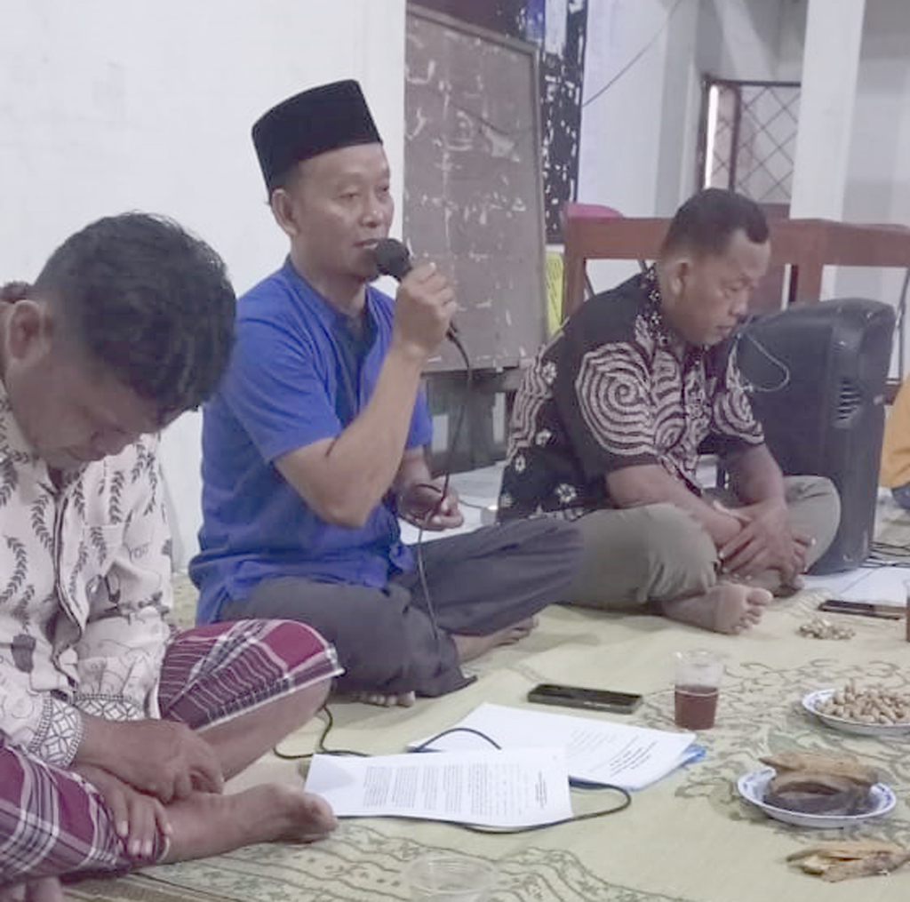 Kepala Desa Cangkol, Kecamatan Plupuh Suwandi Memberikan Sambutan Saat Tirakatan Hari Jadi Sragen Ke 278 Di Balai Desa Setempat ( Foto-Sugimin)