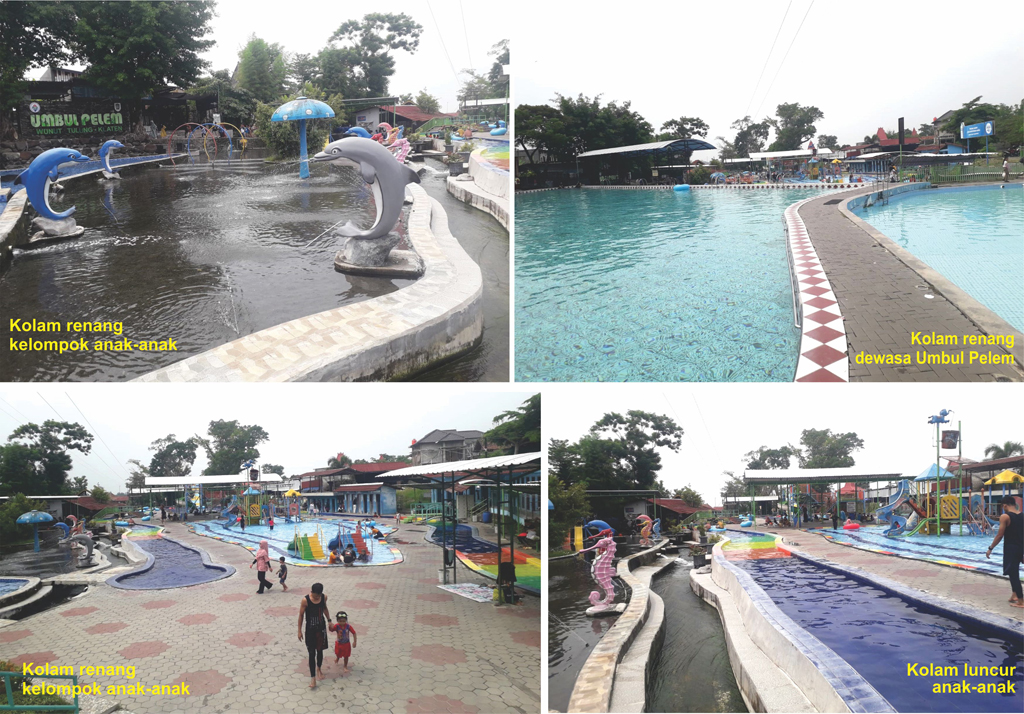 Di tengah kolam renang tersedia papan luncur, air mancur, permainan air. Di pinggir kolam disajikan taman bunga, beberapa tempat duduk. Pohon beringin besar rindang, sulur menjulur di kanan kiri mata air, memayungi sebagian kolam renang, indah dipandang. Ingin semilir gemercik air sumber mampu melepas rasa penat.