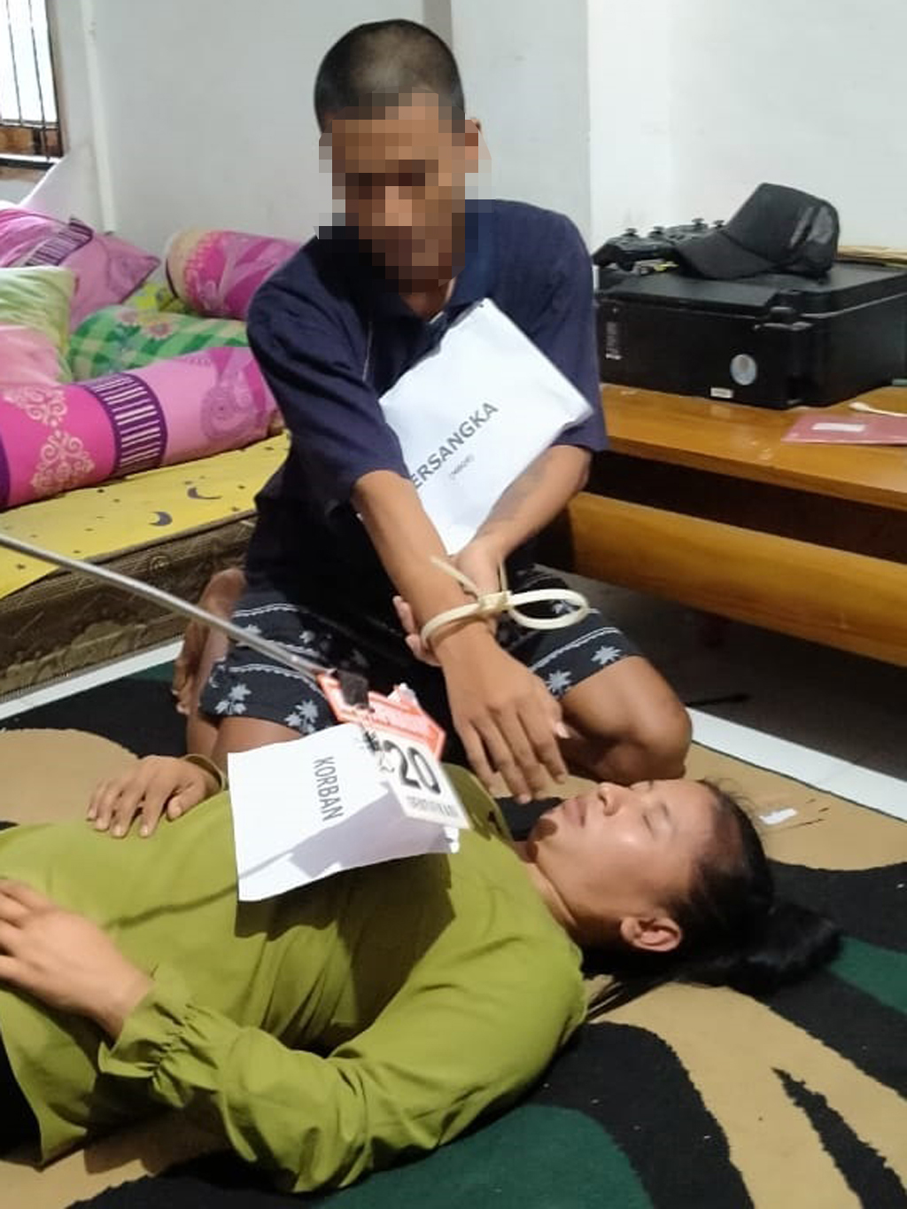 Tak berhenti disitu, saat korban sudah tak bernyawa, pelaku menggasak uang Rp. 9 juta dan sebuah HP milik korban.