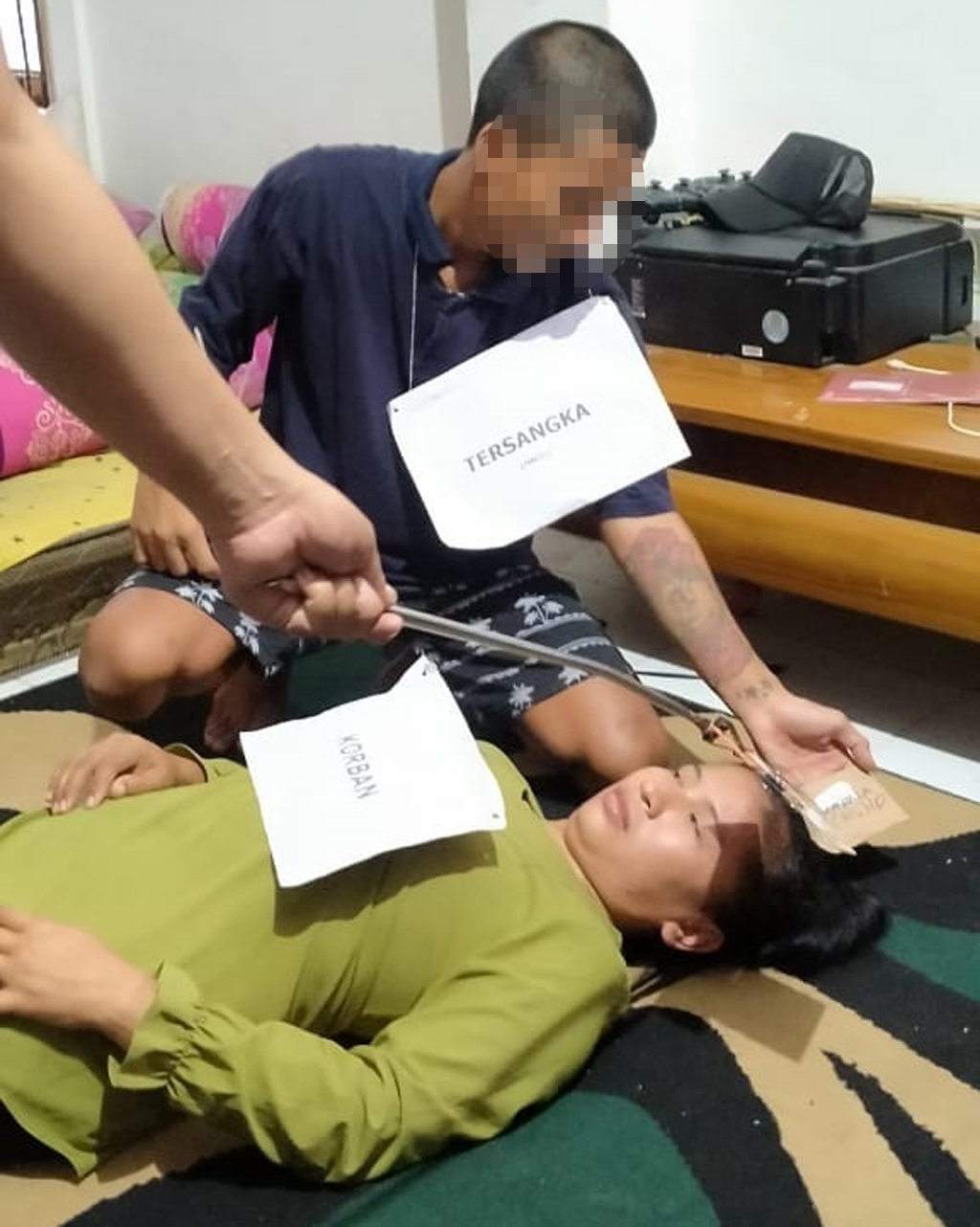 Pelaku naik pitam kemudian mendatangi rumah korban. Dirumah korban tersebut, terjadi cekcok antara pelaku dan korban, kemudian pelaku melakukan penusukan dengan pisau yang sudah disiapkan dari rumah.