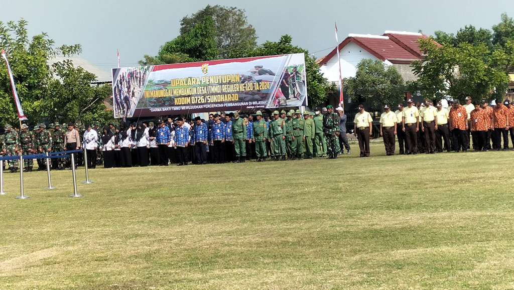 Sukoharjo-Inspirasiline.com. TMMD Reguler ke-120 tahun 2024 resmi ditutup oleh Kasdam IV Diponegoro Brigjen TNI Budi Irawan, SIP., M.Si yang ditandai dengan pemukulan gong dan penanda tanganan berita acara oleh Kasdam di lapangan desa Wirun kecamatan Mojolaban pada Jum’at (7/6/2024), TMMD dengan mengusung tema “ Darma Bakti TMMD Mewujudkan Percepatan Pembangunan di Wilayah”.