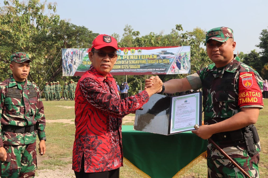 Sragen-Inspirasiline.com. Kodim 0725/Sragen Telah Menyelesaikan Kegiatan TNI Manunggal Membangun Desa Atau Disingkat TMMD Sengkuyung tahap II Tahun 2024 Di Desa Jekawal, Kecamatan Tangen, Kabupaten Sragen. Tentara Manunggal Masuk Desa (TMMD) Dilaksanakan Selama 30 Hari Sejak Dibuka Pada :8/5/2024 Oleh Wakil Bupati (Wabup) Sragen H.Suroto. Hari Ini Kodim 0725/Sragen Menggelar Upacara Penutupan TMMD Di Lapangan Silibau Desa Jekawal, Kecamatan Tangen, Kabupaten Sragen. Jum’at (7/6/2024).