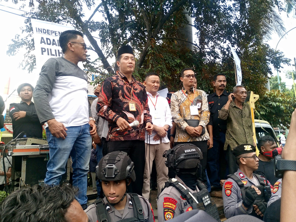 Secara bergantian mereka berorasi diatas truk minta agar Bawaslu keluar darii ruangan untuk menjelaskan soal verifikasi administrasi ‘ warga yang berhak menentukan hak politiknya bukan berdasarkan aplikasi, sistim online hanya sebatas alat bantu yang pasti ada kelemahannya, jangan dijadikan alat penentu untuk mematahkan hak politik seseorang sebab secara faktual jumlah dukungan dari calon telah memenuhi persyaeayanv.’; jelas Urip.