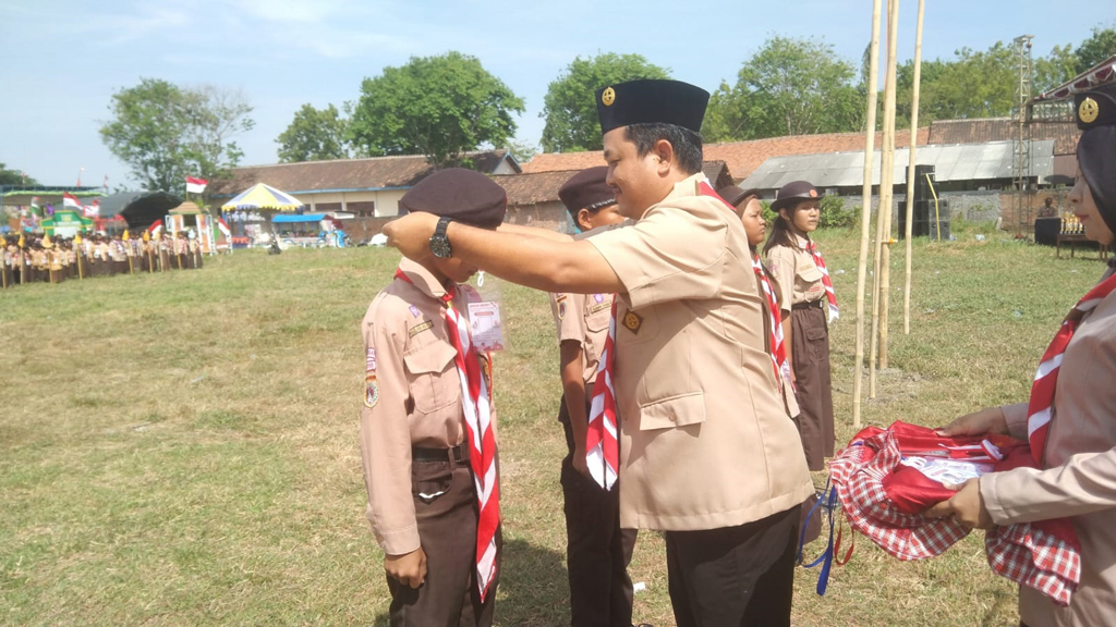 Grobogan-Inspirasiline.c0m. Teriknya mentari tidak menyurutkan semangat pramuka penggalang yang memenuhi lapangan Desa Tanggungharjo Kecamatan Tanggungharjo. Sebanyak 59 regu penggalang ambil peran pada Jambore Ranting V Kwarran Tanggungharjo, Selasa (27/8/2024) Ratusan pramuka penggalang tersebut akan berkemah selama 3 hari sejak 27 Agustus sampai dengan 29 Agustus 2024. Acara dibuka oleh Camat Tanggungharjo selaku Ketua Mabiran Kak Slamet Sanyoto, S.H.M.M.