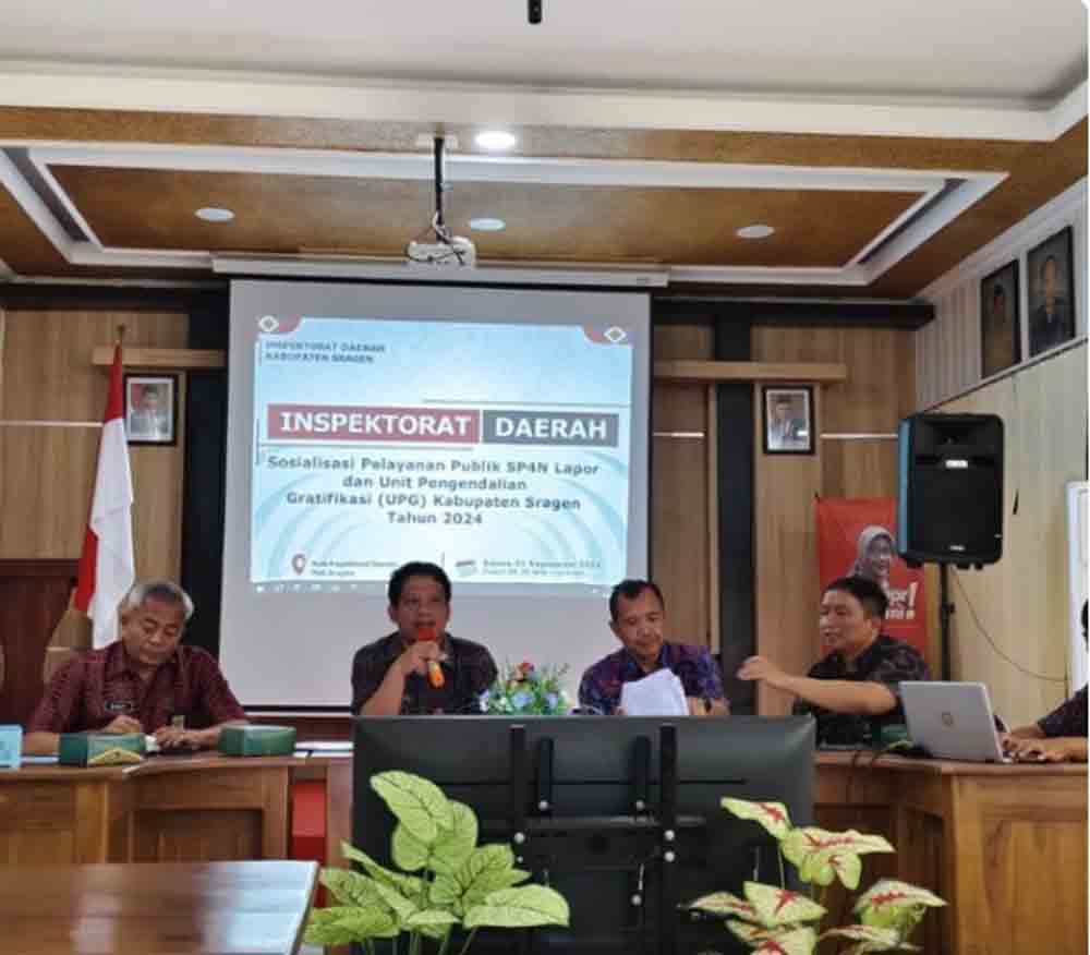 Sragen-Inspirasiline.com. Dalam Rangka Meningkatkan Pelayanan Publik Pemerintahan Inspektorat Daerah Kabupaten Sragen Mengadakan Sosialisasi Pelayanan Publik SP4N Lapor (Sistem Pengelolaan Pelayanan Publik Nasional Layanan Aspirasi Dan Pengaduan Online Rakyat) Dan Unit Pengendalian Gratifikasi (UPG) di Aula Inspektorat Daerah Kabupaten Sragen, Selasa (3/9/2024).