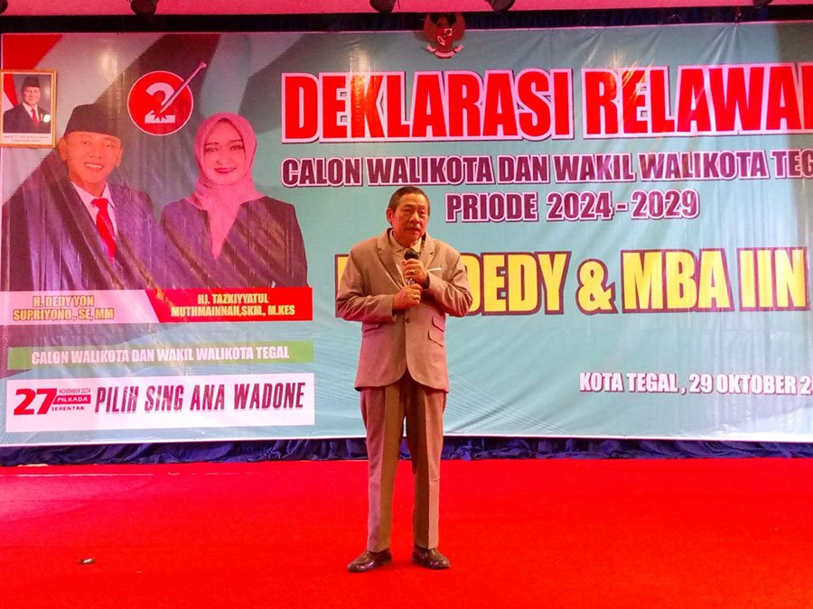 Dijelaskan oleh Dedy Yon, bahwa daftar pemilih tetap (DPT).kota Tegal sebanyak 215.000. Kalau diperkirakan yang akan hadir 76% sampai dengan 81% berarti kurang lebih 170 sampai 175.000 angka yang aman, ini harus memilih 02 adalah 100.000 hal ini tidak boleh main-main harus bisa mengambil hati rekan sekasur sesumur, sedapur dan selembur.