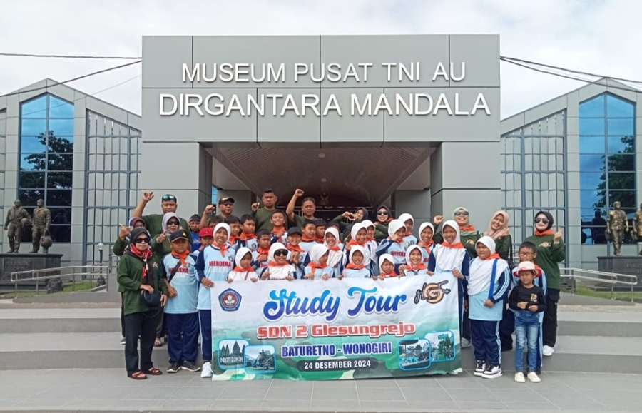 Wonogiri-Inspirasiline.com. Mengisi liburan semester gasal tahun pelajaran 2024/2025 SD Negeri 2 Glesungrejo, Kecamatan Baturetno, Kabupaten Wonogiri, Jawa Tengah, melaksanakan study tour ke Museum TNI AU Dirgantara Mandala, Yogyakarta, Candi Prambanan, dan Waterpark Galuh Tirtonirmolo, Klaten, Jawa Tengah (24/12/2024).