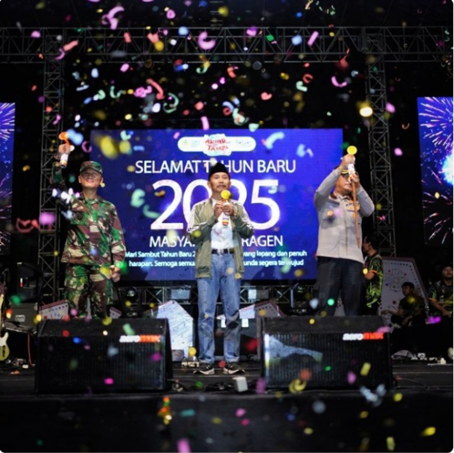 Acara Perayaan Pergantian Tahun Tersebut Turut Dihadiri Wakil Bupati (Wabup) Sragen, H. Suroto, Jajaran Forum Komunikasi Pimpinan Daerah (Forkopimda) Dan Sejumlah Pejabat Pemerintah Kabupaten (Pemkab) Sragen.