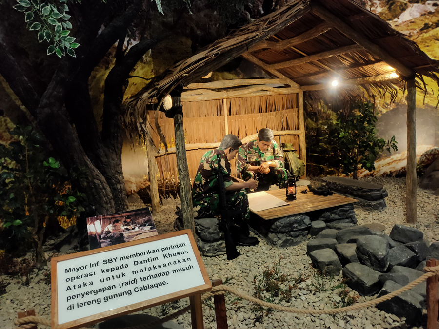Masing – masing tahapan peristiwa di buatkan ruang stand, sesuai dengan situasi, dilengkapi foto, diorama, replika, rekaman, film, atribut tempur, alutsista, lukisan, serta slogan – slogan perjuangan SBY dan Ani Yudhoyono kepada masyarakat, terutama kepada generasi penerus, agar mereka mengetahui sejarah perjuangan bangsa, serta mencintai nusa, bangsa dan NKRI sepenuh hati.