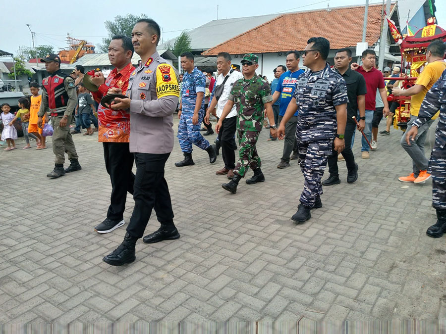 Sementara itu anggota Forkopimda Kota Tegal tidak sekedar menghadiri acara tersebut , namun mereka juga ikut menggotong Toa pe kong menuju Pelabuhan Tegal.