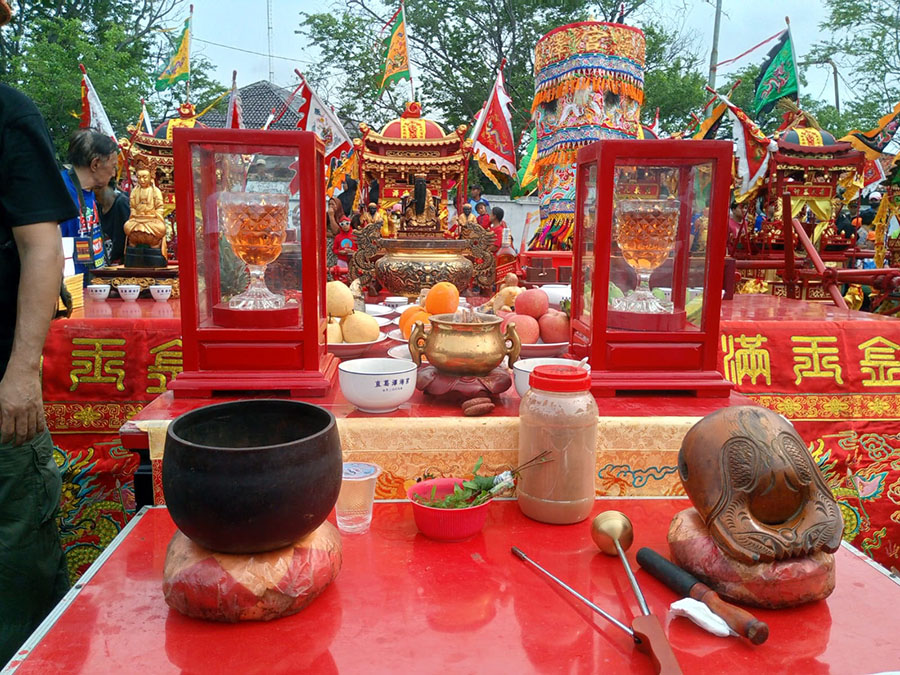 Sampai di pelabuhan Kota Tegal, delapan patung dewa yang berada di dalam tandu diposisikan di dermaga pelabuhan menghadap kelaut dan warga keturunan tionghoa pun, melakukan sembahyangan.