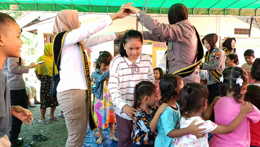 Polwan Polres Grobogan juga mengajak anak-anak tersebut untuk bernyanyi bersama hingga bermain games. Melalui kegiatan itu, diharapkan dapat mengalihkan perhatian anak-anak dari kesedihan dan trauma yang mereka alami akibat bencana banjir.