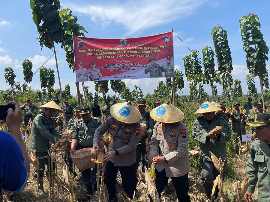 Acara tersebut merupakan kelanjutan hasil jerih payah yang dimulai penanaman bersama pada tanggal 04 Desember 2024 yang lalu., sebagai bukti dan implementasi asta cita Presiden Republik Indonesia bidang ketahanan pangan nasional, kegiatan penen raya jagung tahun 2025 di wilayah KPH Purwodadi tersebut di hadiri 90 peserta terdiri dari Ditbinmas Polda Jateng, Perhutani Divre Jateng, Polisi Resort (Polres) Grobogan, Administratur/Kepala Kesatuan Pemangkuan Hutan (KKPH) Purwodadi, Polisi Sektor (Polsek) Wirosari, Polsek Tawangharjo, Camat Tawangharjo, Kepala Desa Godan beserta jajaran, Kepala Desa Tarub beserta jajaran, Ketua Lembaga Masyarakat Desa Hutan (LMDH) Rimba Sakti Desa Tarub beserta pengurusnya, Ketua LMDH Godan Wana Lestari beseta pengurusnya dan perwakilan LMDH dalam wilayah BKPH Sambirejo.