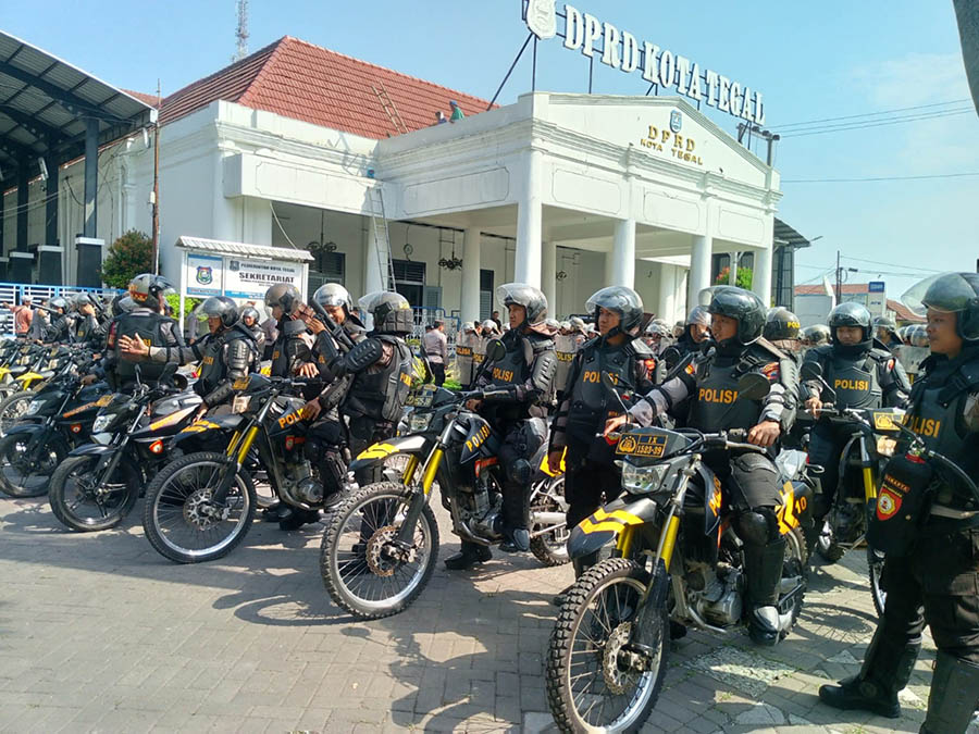 Dikatakan Kapolres Tegal Kota saat memberi evaluasi pada kegiatan pelatihan pengendalian masa (Dalmas) Rabu 30 April 2025. di depan Gedung DPRD Kota Tegal.