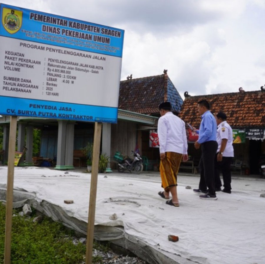 Sementara Itu, Rekonstruksi Jalan Sidomulyo–Galeh Juga Termasuk Dalam Program Penyelenggaraan Jalan Kabupaten/Kota Dengan Nilai Kontrak Sebesar Rp4,805 Miliar, Panjang 3,13 Km, Dan Lebar 4 Meter. Pekerjaan Ini Didanai Melalui Bantuan Keuangan Tahun Anggaran 2025 Dan Dikerjakan Oleh CV. Surya Putra Kontraktor Dalam Jangka Waktu 120 Hari Kalender.