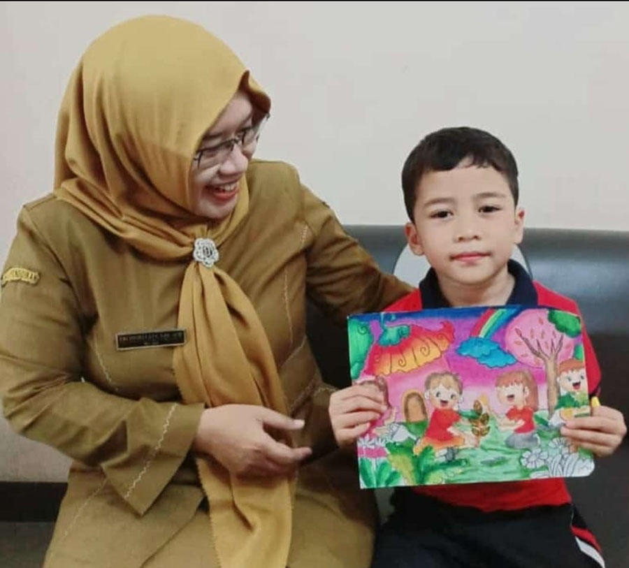 Biola, bersama mamanya juara 1 lomba menggambar Mon and Kids 2025.