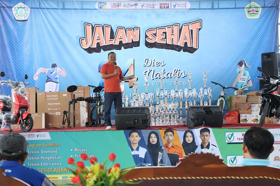 “Dua puluh empat tahun bukanlah waktu yang singkat. Ini adalah bukti bahwa sekolah ini terus tumbuh, berproses, dan memberikan kontribusi nyata dalam mencetak generasi muda tunas-tunas bangsa yang terampil, berakhlak, dan siap menghadapi dunia kerja,” ucap Wurja saat memberikan sambutan sebelum melepas peserta jalan sehat.