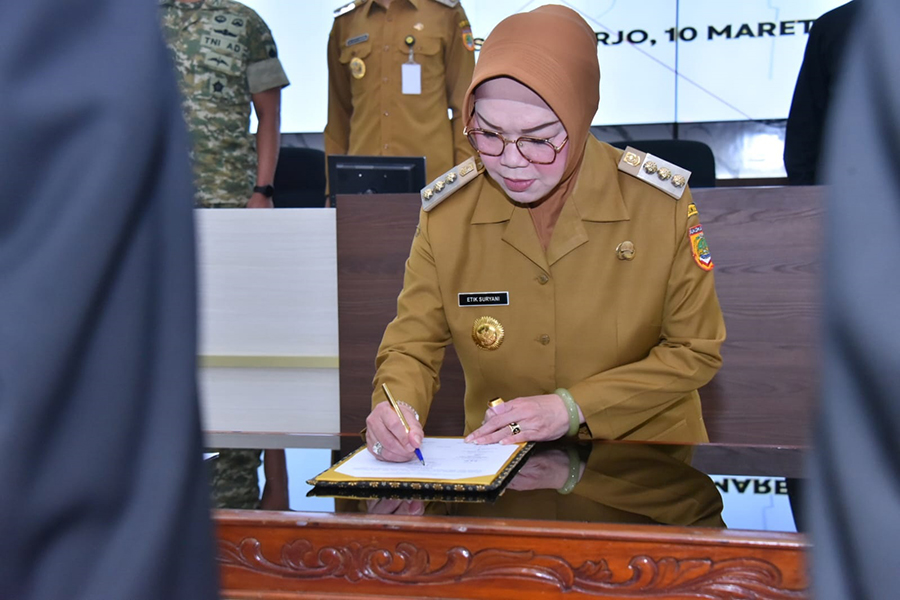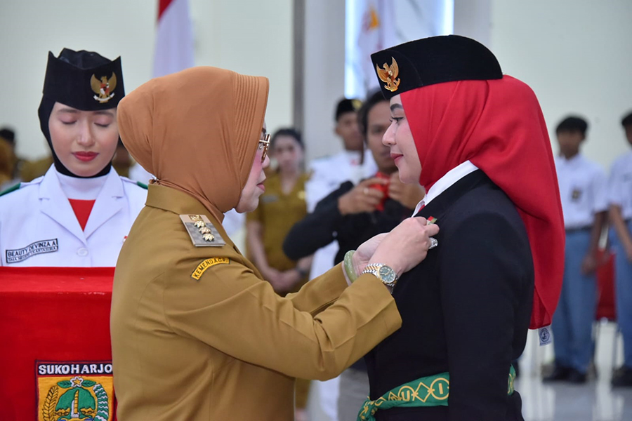 Sukoharjo-Inspirasiline.com. Bertempat di Gedung Menara Wijaya lantai 10 komplek Pemkab Sukoharjo bupati Etik Suryani melantik Duta Pancasila dan membuka secara resmi calon Paskibraka tahun 2026 yang berlangsung pada Selasa (10/3/2026) dihadiri asisten, OPD, dan para camat.