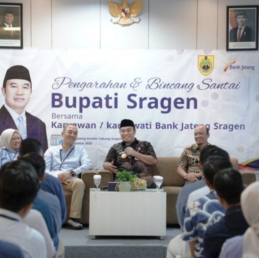 Sragen-Inspirasiline.com. Bupati Sragen Sigit Pamungkas Menghadiri Acara Pengarahan Sekaligus Bincang Santai Bersama Karyawan Dan Karyawati Bank Pembangunan Daerah (BPD) Cabang Sragen, Kamis (14/8/2025), Di Kantor Cabang Bank Jateng Sragen. Kehadiran Bupati Disambut Langsung Oleh Pimpinan Bank Jateng Cabang Sragen, Heri Prasetyo. Dalam Kesempatan Tersebut, Ia Memaparkan Kontribusi Bank Jateng Dalam Pembangunan Daerah, Di Antaranya Penerapan […]