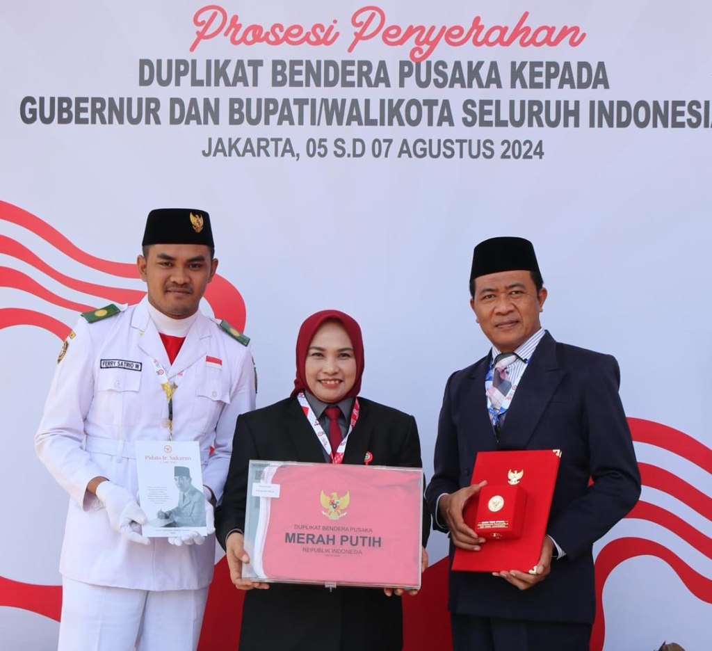 Blora-Inspirasiline.com. Ada yang lain di puncak peringatan HUT Kemerdekaan RI ke -79 di Blora. Yakni bendera yang akan dikibarkan saat upacara kemerdekaan RI nanti, adalah duplikat bendera pusaka dari Ketua Badan Pembinaan Ideologi Pancasila (BPIP) Yudian Wahyudi. Bendera dimaksud telah diterima langsung oleh Wakil Bupati Blora, Tri Yuli Setyowati, dari Ketua BPIP Yudian Wahyudi, di […]