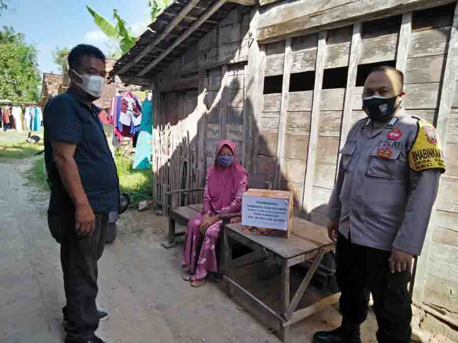 Bhabinkamtibmas Polsek Blora-Perangkat Desa Serahkan Bantuan Sosial Warga Isoman