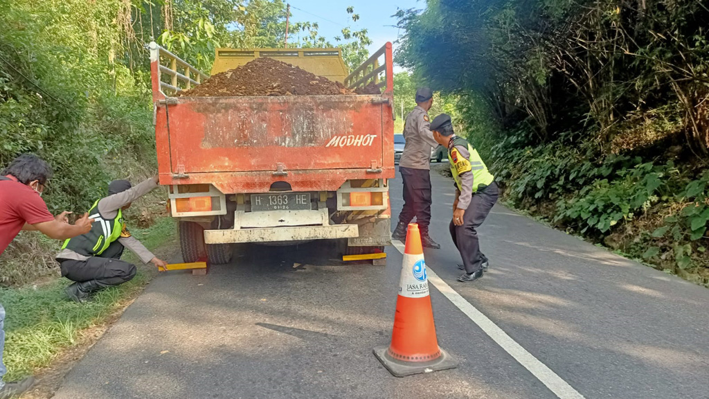 Antisipasi Kecelakaan Saat Arus Mudik, Polsek Grobogan Siapkan Tim Ganjal Ditanjakan Tajam