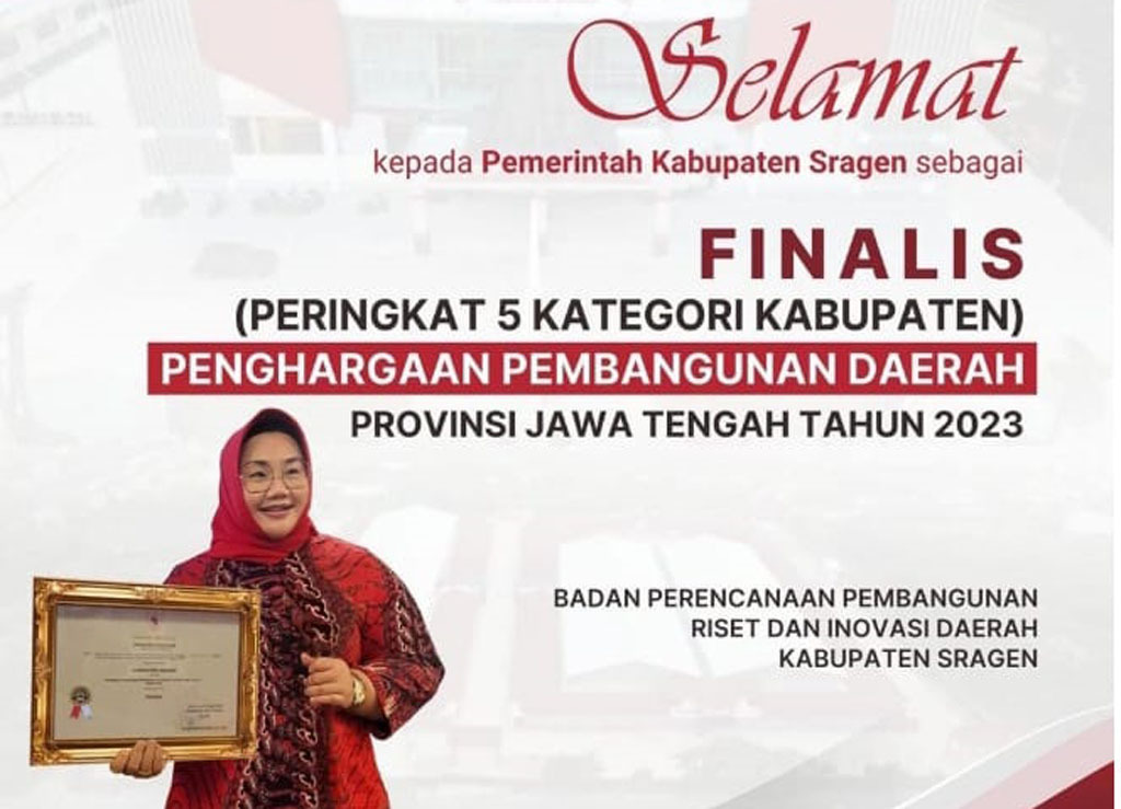 Sragen-Inspirasiline.com. Pemerintah Kabupaten (Pemkab) Sragen Meraih Peringkat ke-5 dengan Nilai 7,68 sebagai Finalis dalam Penghargaan Pembangunan Daerah (PPD) Tingkat Provinsi Jawa Tengah Tahun 2023. Sehingga berhak mendapatkan Insentif Bantuan Keuangan Sebesar Rp.150 Juta untuk Peningkatan Kapasitas Perencanaan Tahun Depan. Penghargaan tersebut diterima Bupati Sragen Kusdinar Untung Yuni Sukowati di Gedung Gradhika Bhakti Praja Jalan Pahlawan, […]