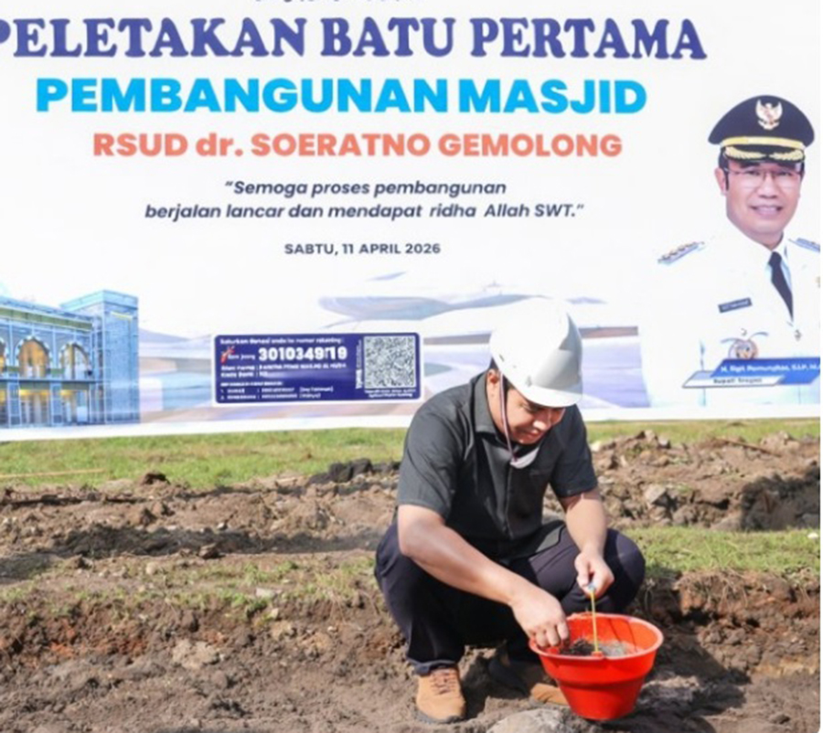 Sragen-Inspirasiline.com. RSUD dr. Soeratno Gemolong terus menambah fasilitas pelayanan, kali ini sarana penunjang pelayanan spiritual yang ditandai dengan peletakan batu pertama pembangunan Masjid oleh Bupati Sragen Sigit Pamungkas, Sabtu (11/4/2026). Kegiatan ini turut dihadiri Wakil Bupati H. Suroto, Ketua TP PKK Kabupaten Sragen Ny. Linda Sigit Pamungkas, Sekda, dr. Hargiyanto, Direktur Utama RSUD dr. Soeratno […]